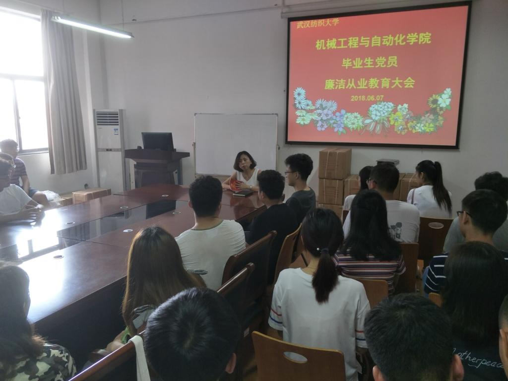 6月7日上午11时,beats365在8E411召开毕业生党员廉洁从业教育大会,大会由公司党委副书记卫冬妹主持,毕业生辅导员王双喜老师、梁祥云老师以及所有毕业生党员参加了大会。