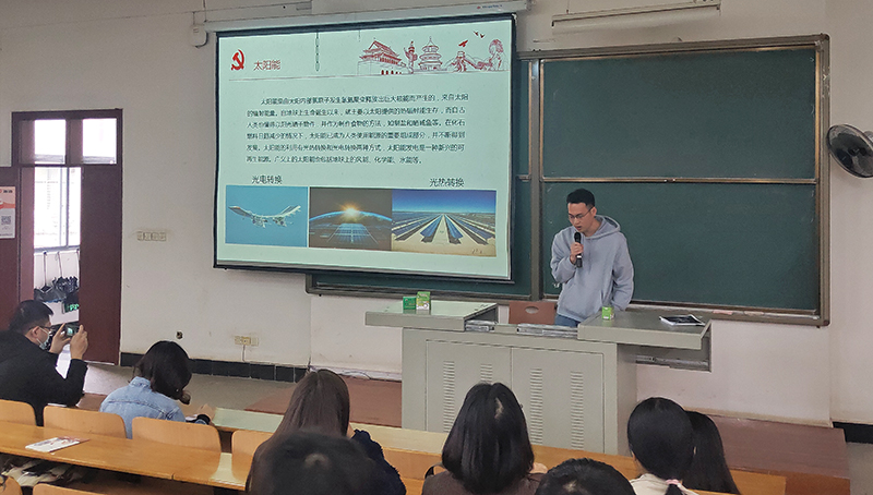 研究生党支部凡宇同学在《“智”造中国》系列党课第十讲中,为全体与会师生讲解了我国新能源领域发展最新成就。他在演讲中说到,党的十九大以来,以习近平同志为核心的党中央提出了“能源革命”的战略思想,为我国能源发展指明了方向,明确了目标,令能源利用效率进一步提高,节能降耗取得新成效。
