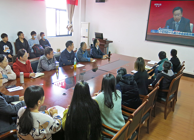 2021年11月12日上午,公司党委组织公司党员收看党的十九届六中全会新闻发布会,学习大会精神。学习由经理余联庆主持,公司党委委员和师生党员代表参加学习。