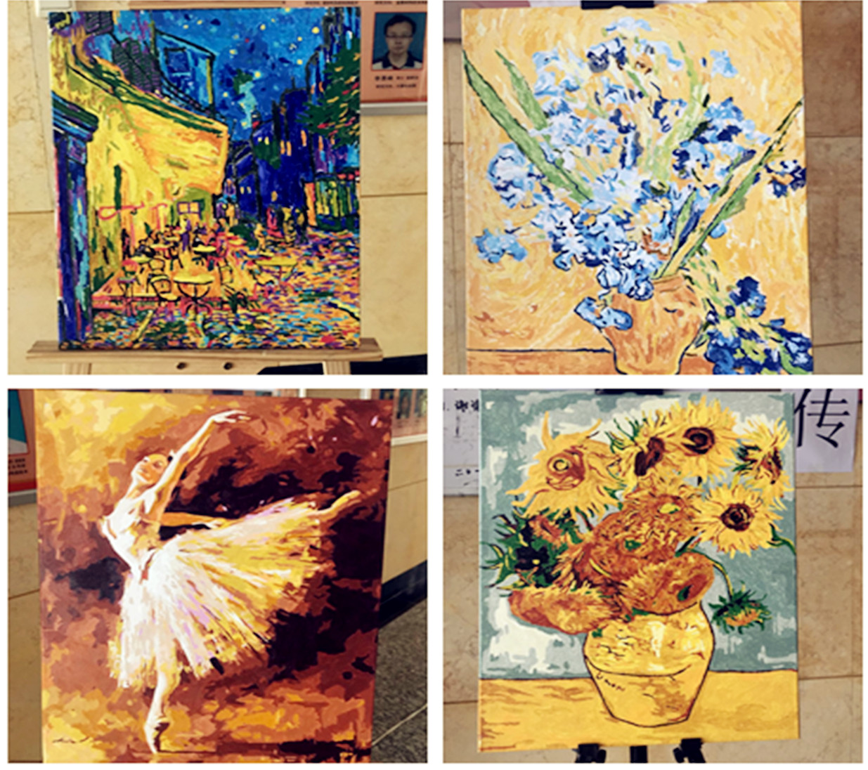 beats365一楼大厅展出十三幅油画作品,这十三幅作品是由19级的十三个新生班集体以“传递”的形式历时一个月的时间精心绘画完成。传递凝聚新生班级,绘画抒写心中情绪,该主题活动由公司“向日葵”心理健康站策划推出。