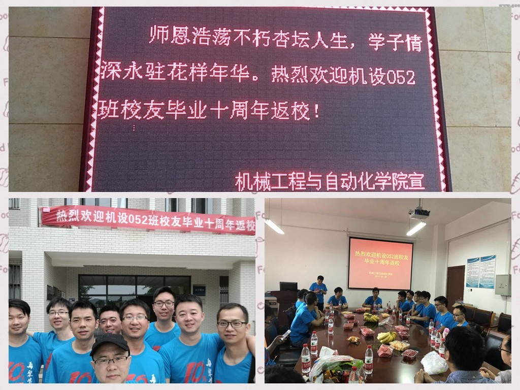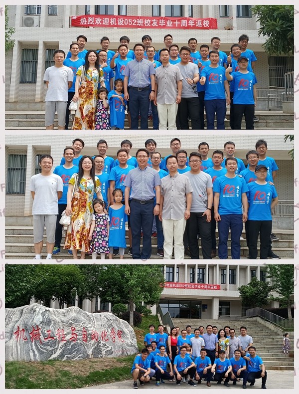 为了重温大学同学情谊,加强员工与母校间的联系,6月8日正值端午假期,机设052班员工在毕业十周年后重聚母校,并于上午九点整在阳光校区8E411成功开展返校主题班会。