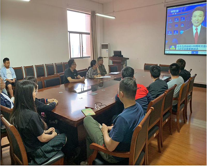 研究生党支部此次主题党日活动主题为:“学习习近平总书记在纪念五四运动100周年大会上的重要讲话精神”。肖书记与到会党员一起观看学习视频,带领大家就“习近平总书记勉励广大青年热爱伟大祖国”进行了深入学习和讨论。