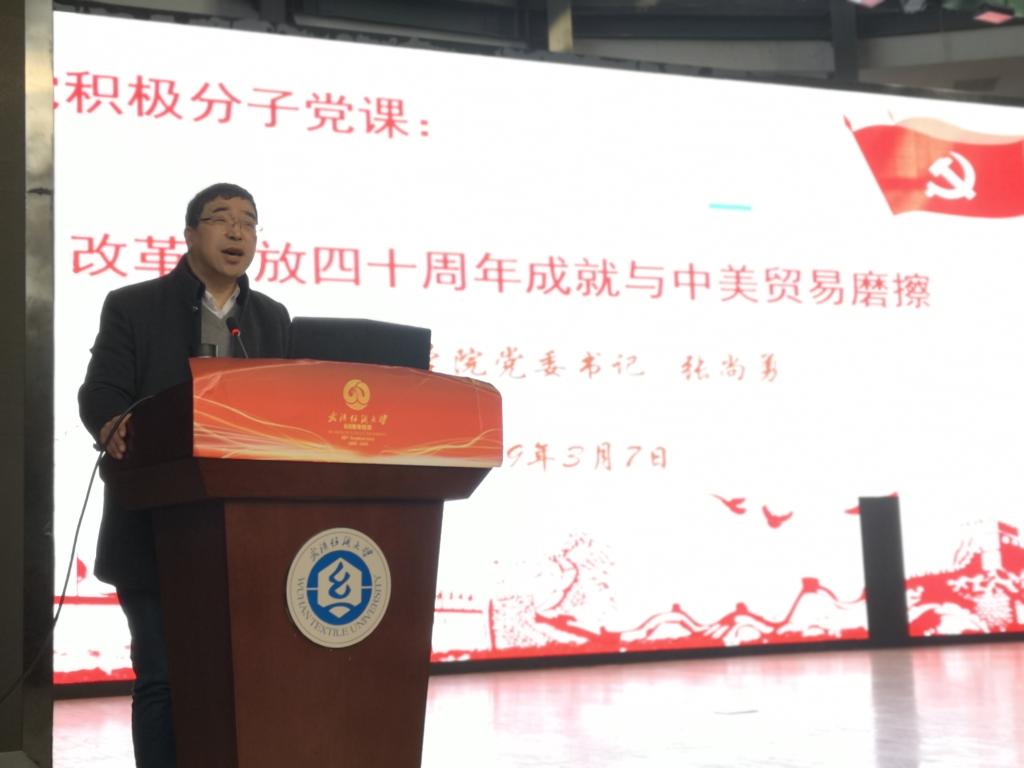 典礼结束后,纺织公司党委书记张尚勇为所有学员讲授了党校第一课——《改革开放四十周年成就与中美贸易摩擦》。