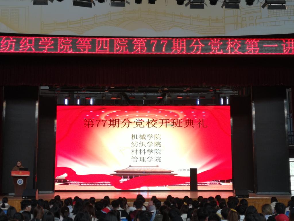 3月7日下午两点,由beats365、纺织公司、材料公司、管理公司四院联合举办的第77期分党校在阳光校区老员工活动中心演播厅举行开班典礼。beats365164名入党积极分子参加仪式。