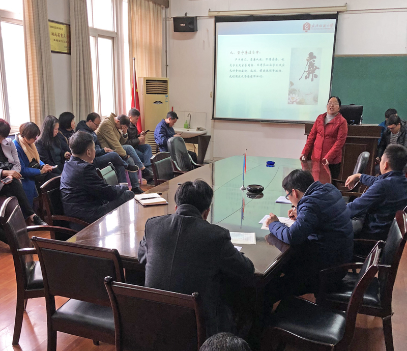 党委副书记刘韦说,《准则》明确了新时代教师职业规范,划定基本底线,深化了师德建设,是国家加强新时代教师队伍建设,提高师德水平,在全社会塑造教师美好形象的重要举措。高校员工工作者担负育人的重大使命,在工作中必须坚持以立德树人为根本,落实好、执行好《准则》,认真贯彻执行党的教育方针,对照“四有好教师”的标准,抓好辅导员教师的师德建设,提升育人水平。各位辅导员要做到:爱岗敬业、关爱员工、诚实守信、廉洁自律,为员工成长成才和健康发展而辛勤耕耘。