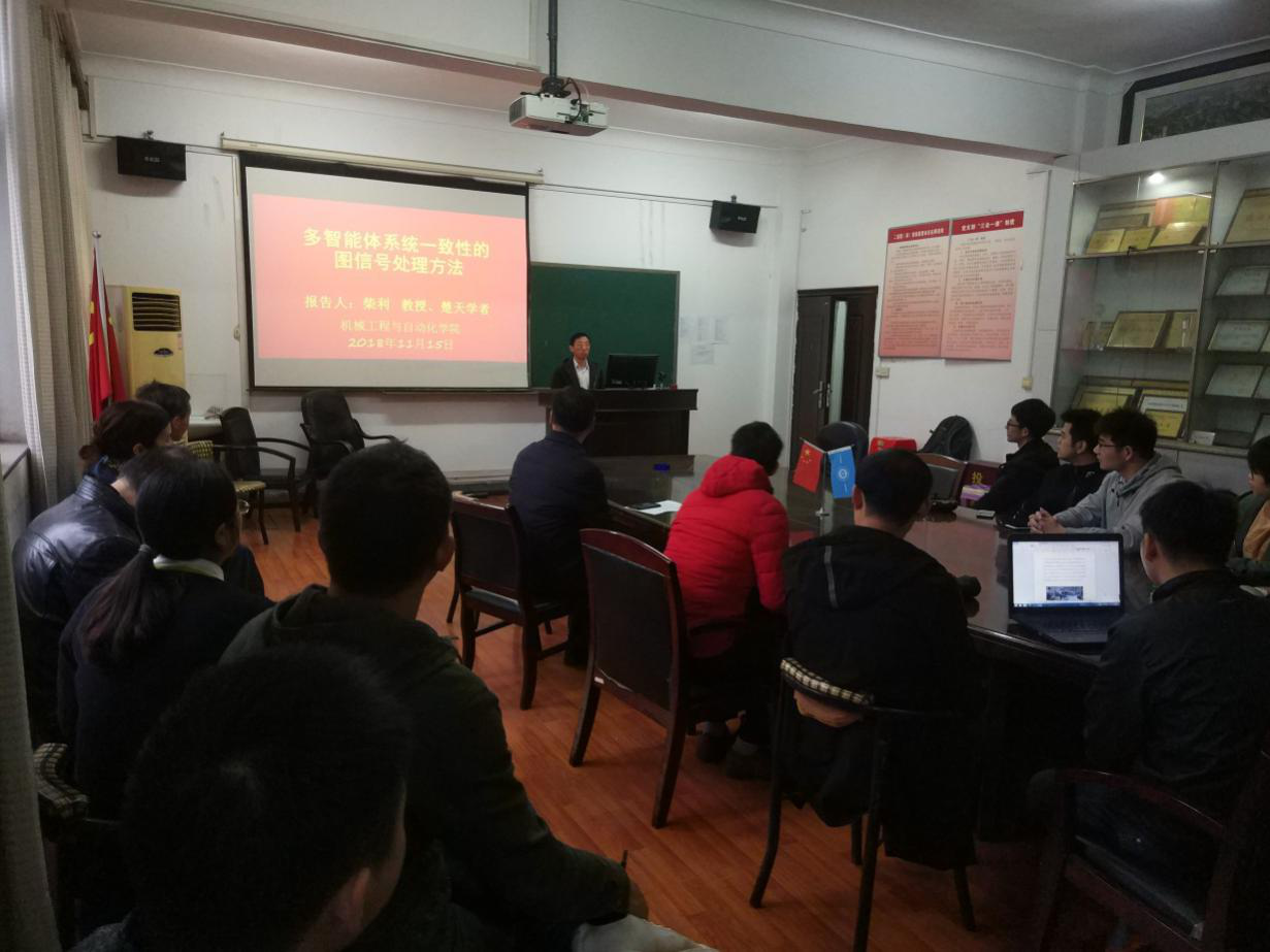 11月15日上午,武汉科技大学信息科学与工程公司柴利教授受邀来到beats365,与公司师生进行了以《多智能体系统一致性的图信号处理方法》为主题的学术交流。beats365经理余联庆教授、副经理马双宝副教授、部分教师以及全院研究生参与交流。交流会由余联庆经理主持。