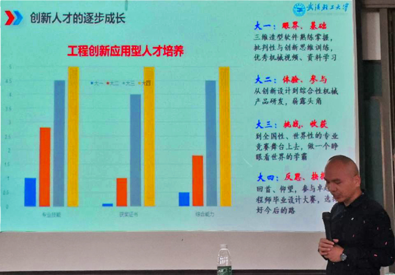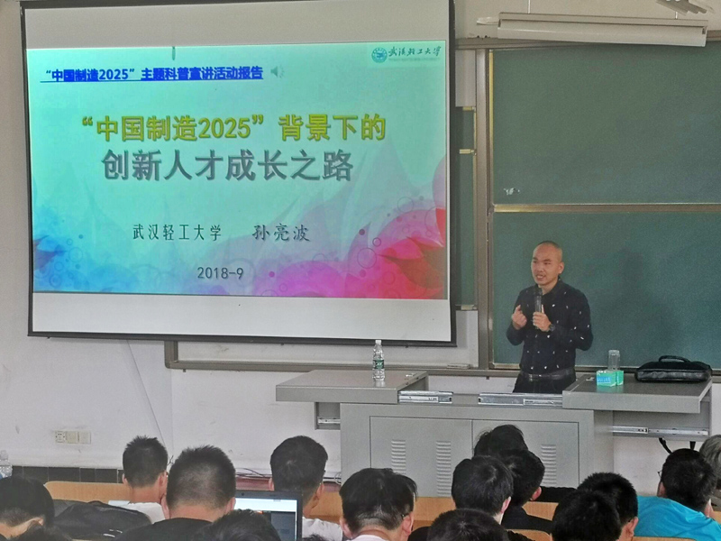 2018年9月27日下午,2018湖北省“中国制造2025”主题科普宣讲活动在beat365官网中文beats365报告厅成功举办。宣讲团专家、武汉轻工业大学机械工程公司副教授孙亮波博士,作了题目为“中国制造2025背景下的创新人才成长之路”的报告,湖北省机械工程学会副秘书长揭英诚、beats365近200名师生参加了活动。beat365官网中文大学beats365副院吴世林主持了本次宣讲。