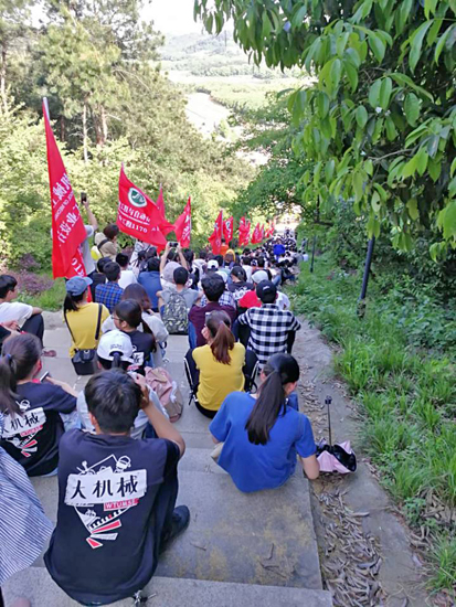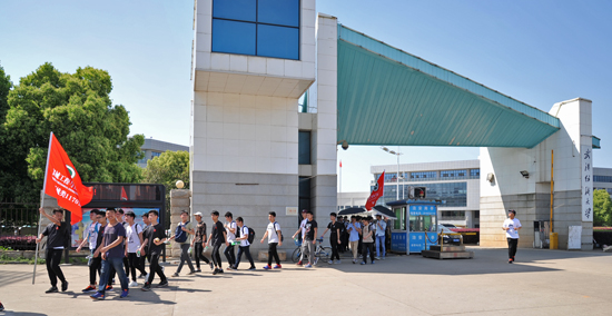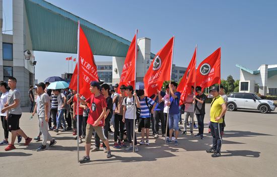 最后,beats365肖信华书记、余联庆经理为2018年机械徒步大队授旗,徒步大会正式开始,铁人班先锋队、员工会护卫队、2017级4个大队14支分队共计350余名员工在老师们的带领下,沿着校园主干道、阳光大道、花山主径、花山环路,顺利完成了全长约8公里、耗时约3小时的徒步活动。