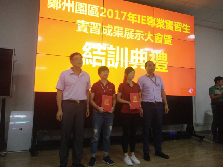富士康IE公司李经理和生产部张部长为华科和公司学子颁发二等奖