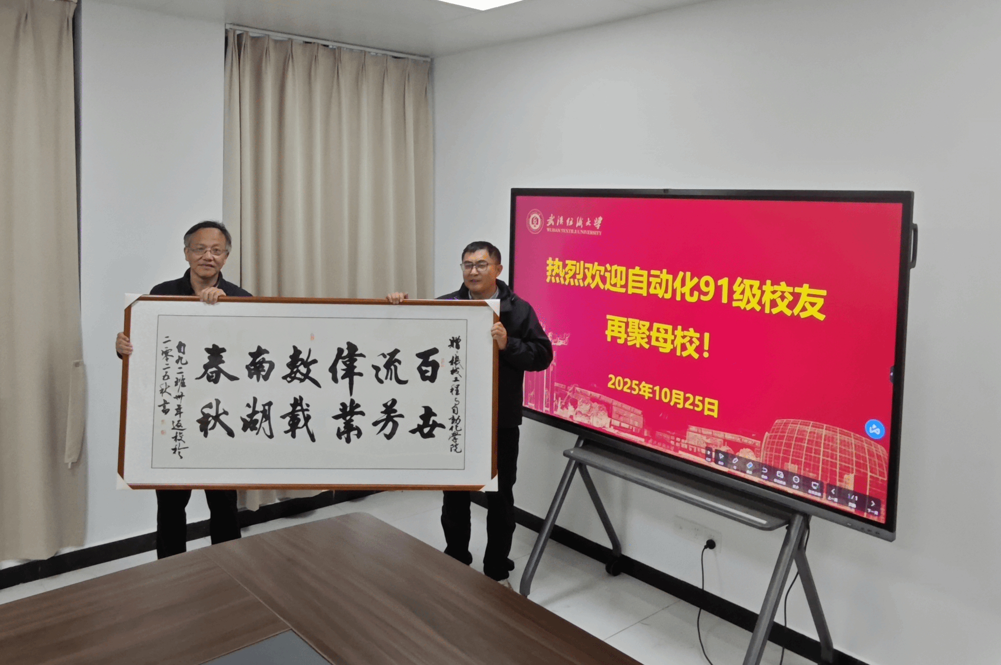 为表达对母校的感恩之情,自动化91级员工代表向公司赠送了一幅精心准备的纪念牌匾,干书记代表公司接受赠礼,并与员工共同合影留念。