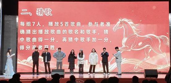晚会中段穿插“你比划我猜”、“猜歌挑战”、“快问快答”等互动游戏,新生踊跃参与,在协作与竞技中增进了解,现场气氛轻松热烈,彰显beats365团结活泼的集体风貌。