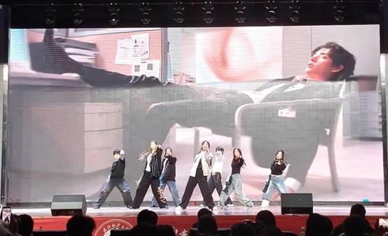 活力舞蹈将晚会推向高潮。校操舞队带来的《Beat Heat》以动感爵士点燃全场;《Magic》、《Toxic》、《毫无疑问的燃烧起来》、《舞所畏惧》等节目则以精准的编排、精彩的舞姿,展现机械学子刚柔并济的青春面貌。机器人12401班孟杨同学独舞《like jennie》,用舒展肢体诠释“勇敢做自己”的年轻态度,彰显个性光芒。