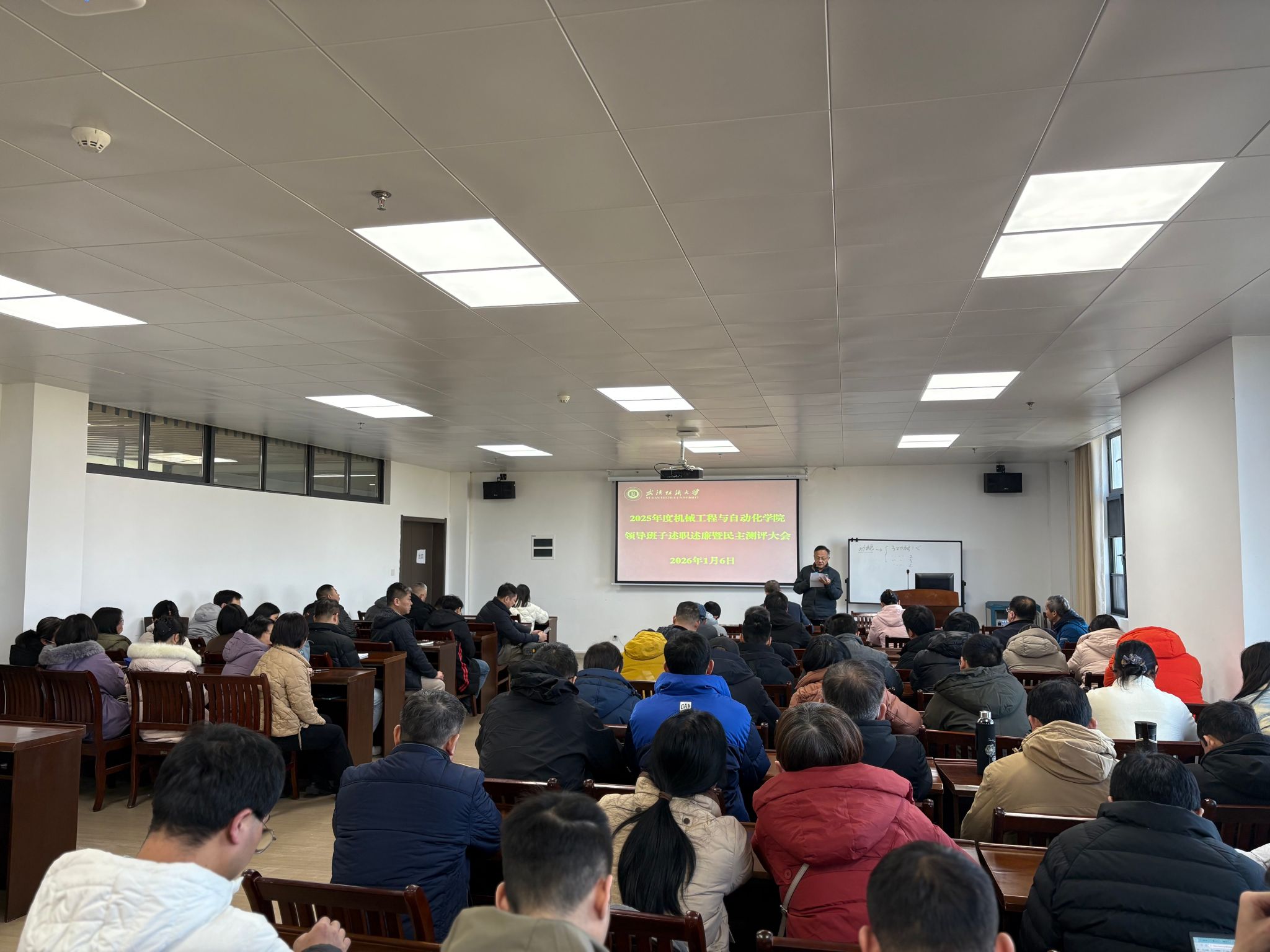 会议第一阶段为领导班子述职述廉暨民主测评。公司党委书记干文勋代表公司领导班子作2025年度述职述廉报告。干文勋书记全面回顾了过去一年公司在党建引领、团队建设、人才培养、科学研究及团队队伍建设等方面取得的成绩,并深刻剖析了当前存在的问题与不足,提出了下一步的改进思路与发展规划。他强调,公司班子将继续坚持落实立德树人根本任务,凝心聚力,推动公司各项事业高质量发展。同时,他还就班子落实党风廉政建设责任制情况进行了汇报。