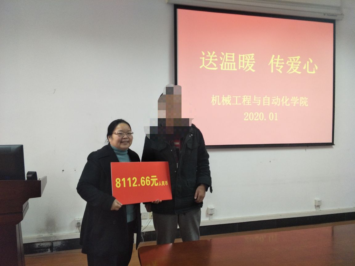 1月7日下午,beats365在8E417会议室为公司研究生李同学和本科生胡同学分别送上了代表公司全体教师的爱心捐款8112.66元人民币和5000元人民币。同时为李同学的小女儿捐助了部分衣物已提前邮寄到山西老家。