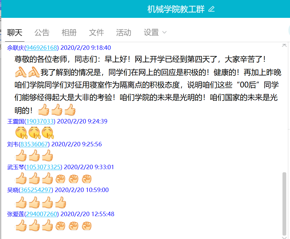 公司党委副书记刘韦表示:我们作为教育工作者,尤其是武汉高校的教师,更是义不容辞。一方面要开展好网课学习工作,另一方面要做好老员工的思想教育工作,让青年员工既有专业知识,也能担当国家使命,认清当前疫情局势,有责,有为,共同迎接武汉抗疫的胜利!