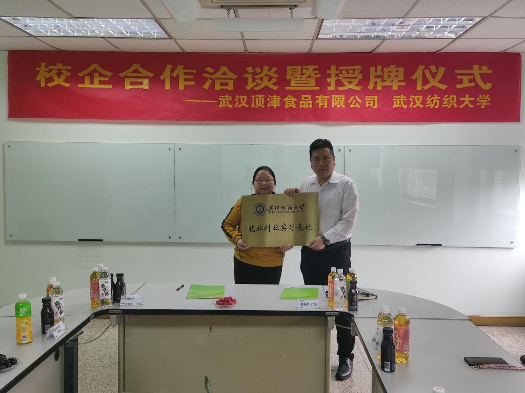 在武汉顶津食品有限公司,肖信华,余联庆一行实地考察了饮用水生产车间,企业情况展示厅以及办公环境,同公司相关负责人就智能化流水线运行和产品开发情况进行了交流讨论。座谈会上,厂长吴光荣详细介绍了企业情况,并就加快推进校企合作,提升企业素质,推进项目研发与人才培养共建方面提出了期望。余联庆经理详细了解了公司的发展情况和企业未来的发展目标,并向大家介绍了beats365科研建设情况,表示希望通过双方的合作,促进公司教学科研与产业发展紧密结合,努力在企业关键技术研发与产教融合方面发挥重要作用。双方还就企业奖学金的设置、老员工生产实习等方面达成了初步意向,签署了校企合作框架协议书,并进行了就业创业实习基地授牌仪式。