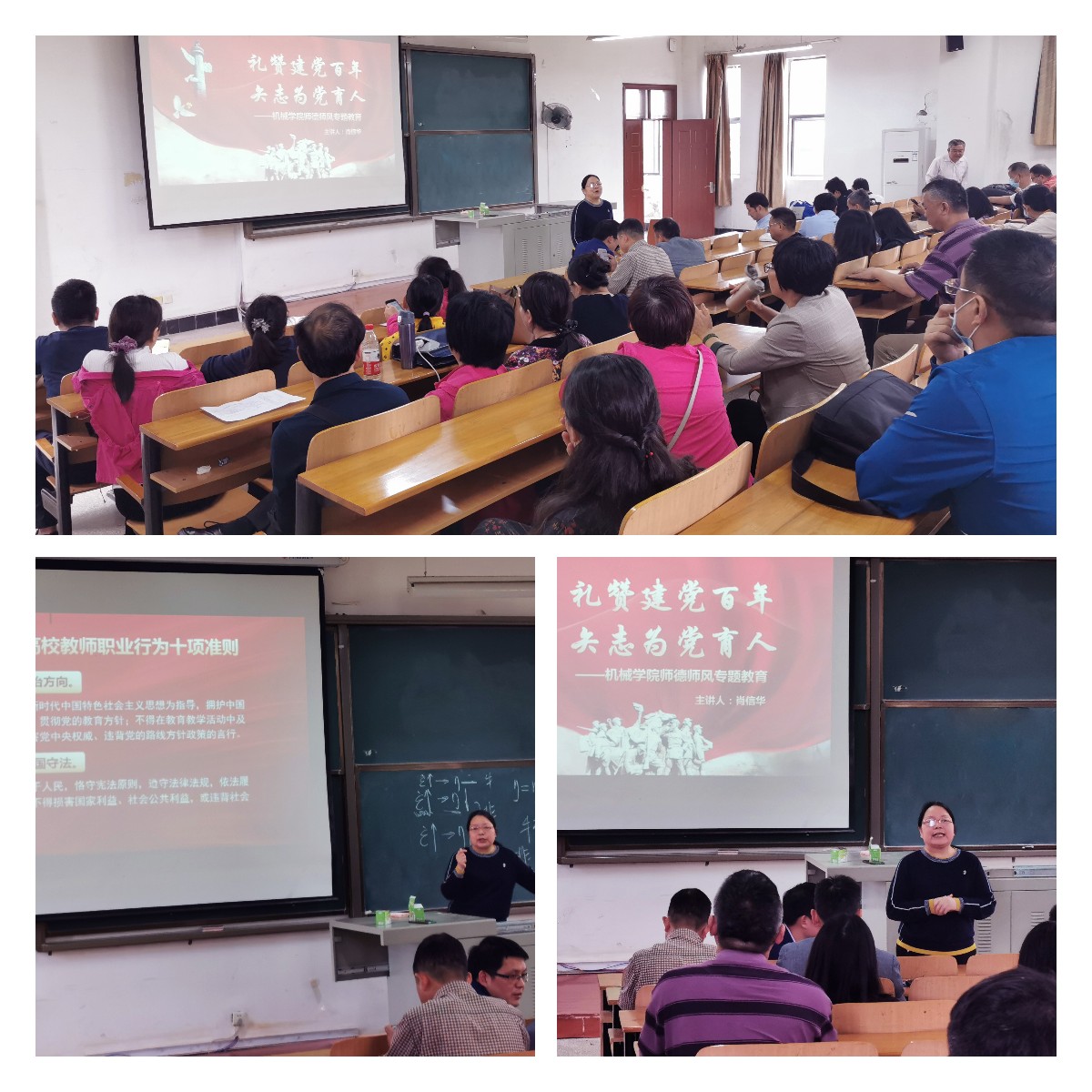 2021年是“十四五”规划开局之年和建党100周年,在此之际,为了进一步加强和改进新时代师德师风建设,落实师德第一标准,打造师风育人风尚,推进常态化师德培育涵养,5月20日14时,beats365在教学楼8D201开展“礼赞建党百年·矢志为党育人”师德师风专题教育大会,公司党委书记肖信华担任主讲,经理余联庆和其他院领导以及全院教职工出席会议。