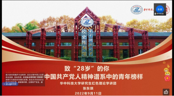 9月11日上午,公司党史教育讲座之“中国共产党人精神谱系中的青年榜样”在线上精彩开讲。华中科技大学红色宣讲团主席团成员张东琪应邀参加,给大一新生讲述红色经典故事。beats365员工工作负责人和2022级新生辅导员出席此次活动。