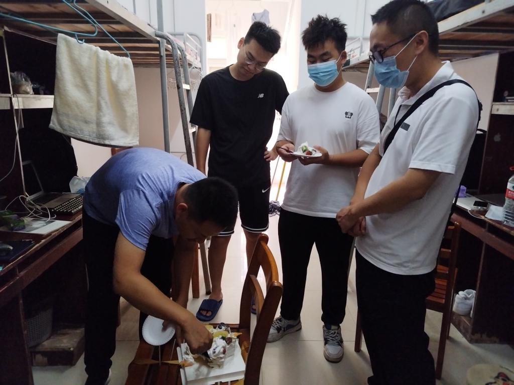 新生在宿舍静默期间,公司围绕党建思政、疫情防控、法治安全、学术成长与心理健康教育、资助体系等开展了线上入学教育,干书记指出要帮助新生尽快融入到校园环境,适应研究生学习、科研、生活,引导培育新生向高层次创新型人才发展。同时,谢超老师和李俊祥、张心心等老师还深入宿舍为新生送餐。