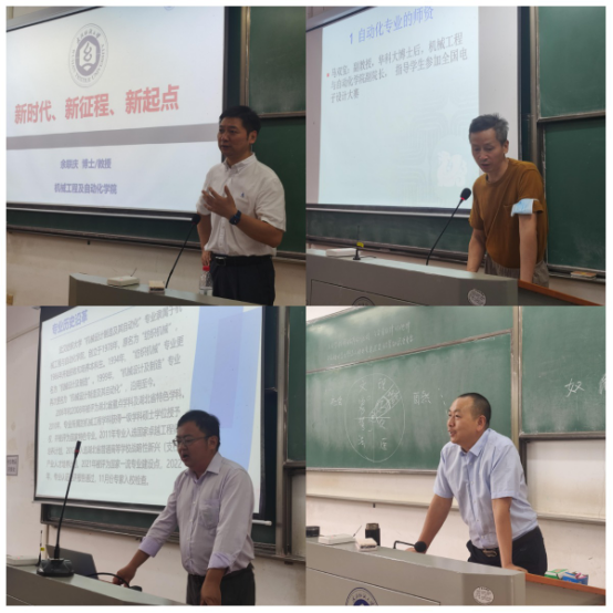 随后,胡峰老师、张弛老师、薛勇老师分别对机械类和自动化类专业的团队力量和办学历史进行了详细的介绍,并对本专业是什么、学什么、有何用进行了详细的解答,让2022级新生对所学专业有了更深入的了解。接着,三位老师强调了本专业的毕业要求,对于如何学好专业知识和如何学以致用提供了自己的建议。