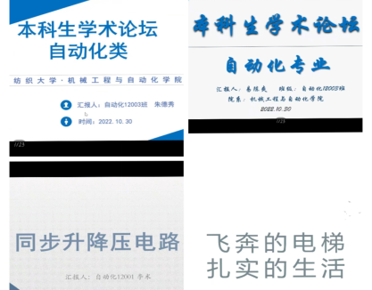 朱德秀、易陈爽、李术和杨慧玲同学分别就新型金属比热容实验仪的研制、单相交流电子负载、同步升降压电路、飞奔的电梯四个项目进行了讲解,并分享了他们的设计思路与参赛经验。论坛最后,四位优秀的学长学姐与2022级的同学们进行了亲切交流和互动,并鼓励他们积极参加学科竞赛,勇于挑战自我。