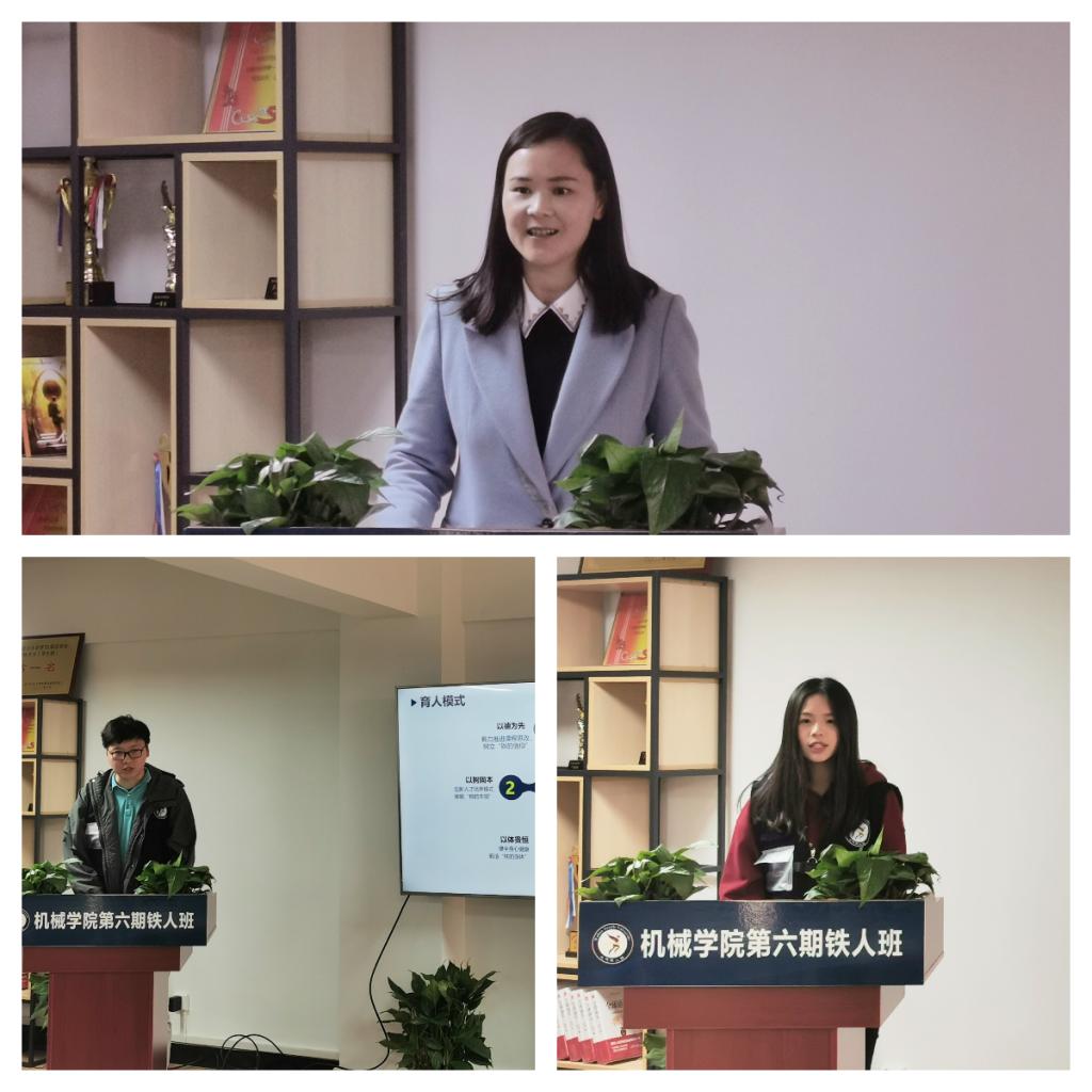 开班仪式首先展示了第六期铁人班形象宣传片,播放了往期铁人班成员代表献上的祝福视频,预祝第六期铁人班圆满开班。通过互动环节,展示了新学员的所思所学和团队建设情况。其次,铁人班指导老师李宏运介绍了第六期铁人班培养模式及班级管理要求。第六期铁人班学员代表徐芷洁发言,她表示,作为新时代的青年人,我们就是要怀揣梦想,努力奋斗,为同学树立钢铁榜样,用所学知识和才干为实现中华民族伟大复兴的中国梦作出自己的贡献。