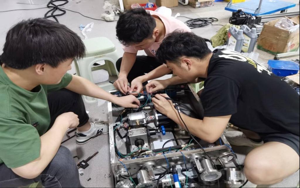 徐家伟等同学申报的项目为“城市排水管道智能作业机器人系统研究”,发榜单位是武汉数字建造产业技术研究院有限公司,旨在解决解决下水管道大量积水、淤泥沉积问题,同时能够避免管道工人以身涉险,保证下水管道的排水功能有效。整体方案采用履带式液压驱动、双螺旋挑动清淤机构、集合气体采集、双目视觉等传感器协同作业的方案。实现了管道探测、水下行走、水下清淤、越障等功能,各项赛题要求指标均成功达成,解决了出题单位的问题。该项成绩得益于参赛员工团队秉承大赛“崇尚科学、追求真知、勤奋学习、锐意创新、迎接挑战”的宗旨,在老师的指导下结合学科特色,充分发挥学科优势,认真备战、刻苦钻研、矢志创新、精益求精、团结合作,这既是对公司员工创新实践能力的锻炼,也是对公司在创新人才培养、课程建设和教学改革等方面的检验。