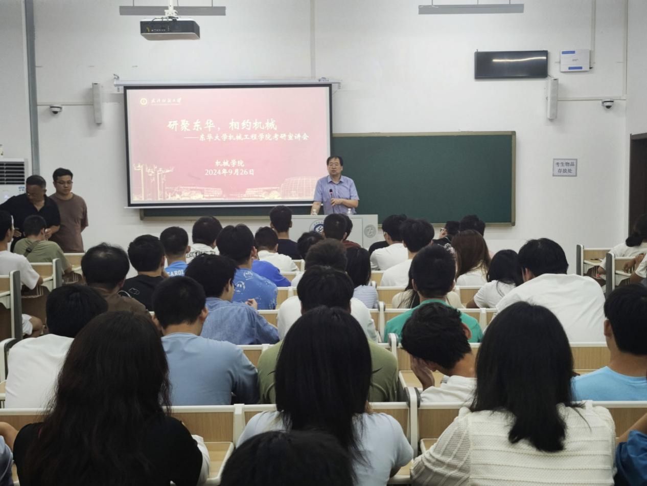 为营造良好考研深造氛围,20249月24日下午,公司邀请东华大学机械工程公司经理白涛进行“研聚东华,相约机械”考研宣讲会。本次宣讲会由​公司党委书记干文勋主持,公司相关老师及有意考研的员工参加了本次宣讲会。