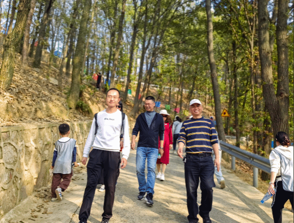 随后,教师们一起徒步攀登九真山。“九真山”地处九真山国家森林公园的核心区域,面积3平方千米,因九座山峰绵延相连而得名,主峰海拔276米,被誉为“江汉平原第一峰”。教职工们徒步穿行其中,观赏知音谷、扶琴石等景点,畅谈伯牙子期“高山流水遇知音”的经典故事。最后登上最高景点“锁情台”,山清水秀尽收眼底,感受到极目楚天舒的美好意境。