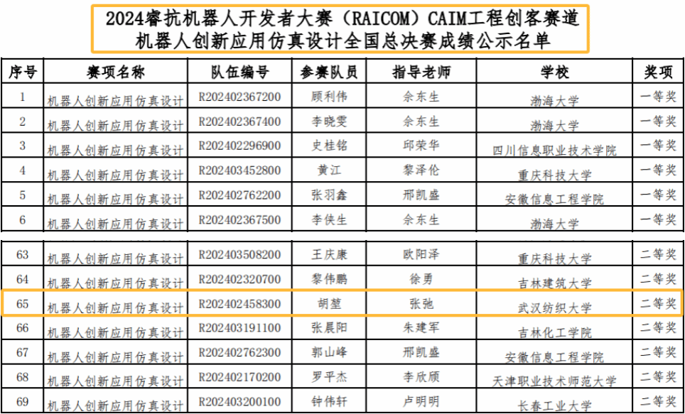 近日,由工业和信息化部人才交流中心主办的2024睿抗机器人开发者大赛全国总决赛落下帷幕,由beats365张弛老师指导的“R202402458300“队在机器人创新应用仿真设计项目中荣获湖北省赛区二等奖和全国总决赛二等奖。