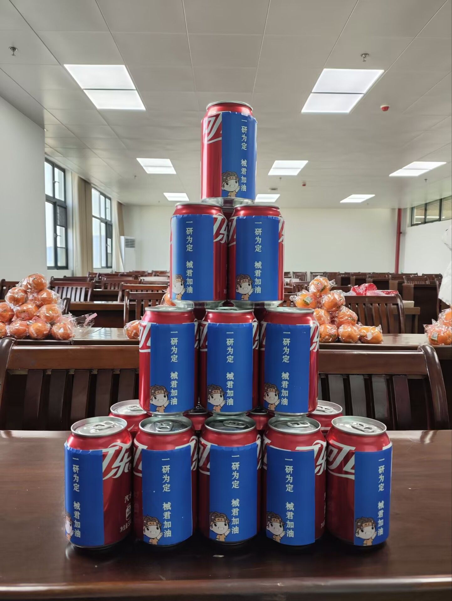 活动现场,播放了学弟学妹录制的考研鼓励视频,并为大家发放了心想事“橙”和印有“一研为定,械君加油”字样的专属定制可乐,饱含着全院师生对考研学子的深情祝福和亲切关怀。