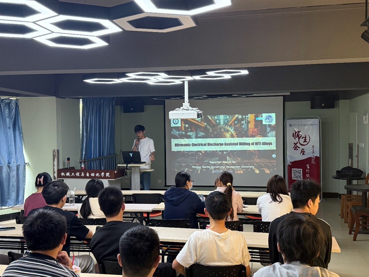 徐默然老师围绕 “航空发动机镍钛系合金的超声辅助电火花加工技术研究”展开分享。他通过动画演示和实验数据对比,展示该技术在加工效率和表面质量上的突破,介绍团队在工艺参数优化、装备研制中的创新成果。徐老师强调解决 “卡脖子” 问题需坐得住冷板凳,勉励员工培养钻研精神。交流环节,同学们就考研、考公、就业等职业发展热点问题提问,徐老师结合自身经历和专业知识详细解答。