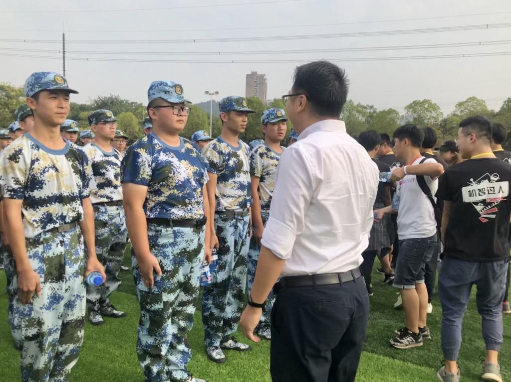 新生们接过老师和学长学姐送的水,一句句由衷地“谢谢老师!谢谢学长学姐!”让人十分感动。而在这一天的训练场上,除了那鲜艳的迷彩服,“机智过人”的小黑衫也成为了军训期间一道靓丽的风景线。