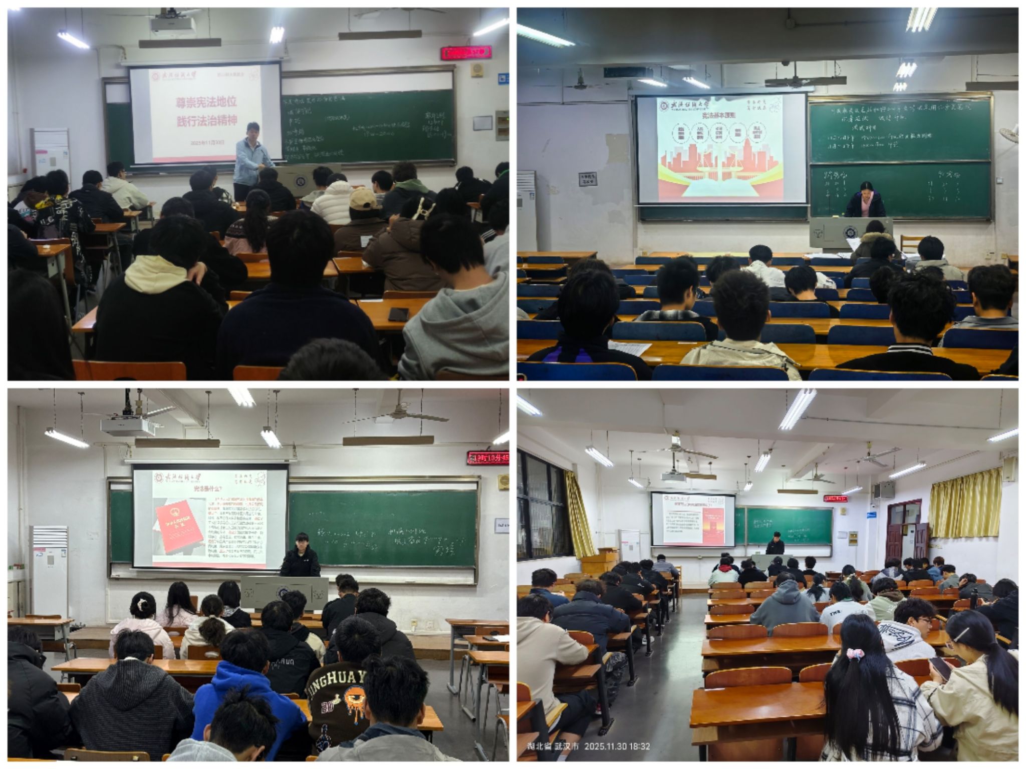 班会伊始,老师带领同学们学习习近平总书记关于宪法的重要论述,了解宪法的根本法地位及其在国家治理、社会生活中的重要作用。随后,老师通过系统讲解宪法的定义、发展历程、核心精神与基本原则,帮助同学们建立起对宪法的全面认知。班会重点阐述了宪法与老员工日常学习生活的紧密联系,针对平等权、人身自由、监督权等与员工息息相关的宪法权利内容进行了生动解读,让大家深刻体会宪法对公民权利的坚实保障。