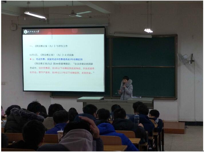 宋老师组织17级全体员工认真学习了《beat365官网中文员工手册(2018年版)》和2015年11月1日正式实施的《刑法修正案(九)》中关于考试作弊入刑的有关条款,详细解读了相关规定,让大家认识到应该养成良好的行为习惯,注意宿舍安全文明,同学交往文明有礼,考试中重视考风考纪,坚决杜绝各类违纪行为的发生。