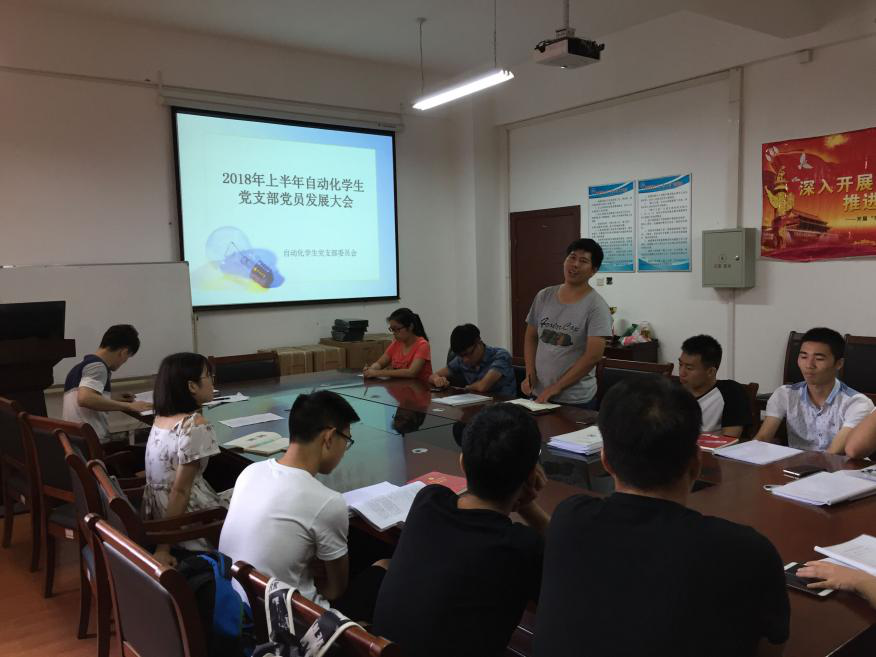 2018年6月18日下午两点,beats365自动化党支部于8E-411召开了“2018年上半年自动化支部党员发展大会和六月政治理论学习”的主题会议。本次会议由支部书记饶老师主持,参与本次会议的还有自动化员工党支部全体同志。