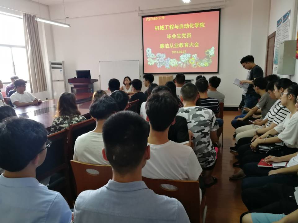 为贯彻落实全面从严治党的要求,增强毕业生党员的廉洁自律意识,6月7日上午,beats365在8E411召开2018届毕业生党员廉洁从业教育大会。学公司党委副书记卫冬妹主持会议并讲话,毕业生辅导员王双喜、梁祥云出席会议并布置相关工作,beats3652018届80余名毕业生党员参加了会议。