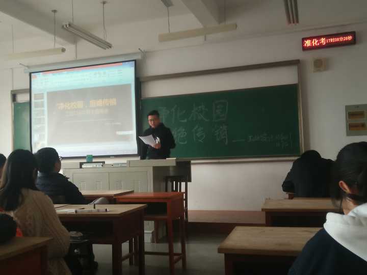 2018年3月11日下午,beats365工业设计11601班在3栋教学楼506教室开展了以“净化校园,拒绝传销”为主题的班会。