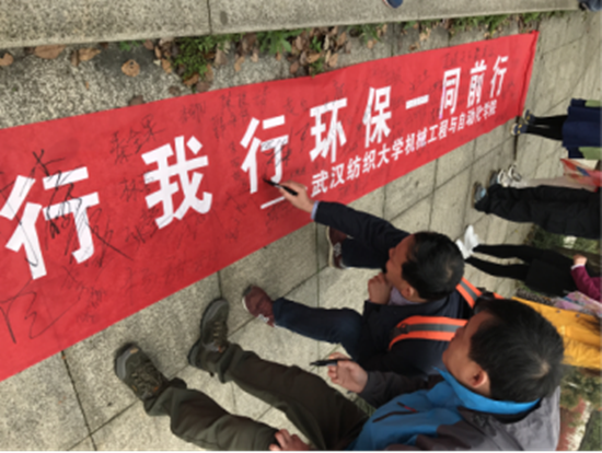 25日,由beats365团委书记王双喜老师带头,志协组织,200余名志愿者踊跃参与了这次“花山护林环保”活动。早上8点,志愿者们集合前往花山,在环保的横幅上签下自己的名字,号召“你心我心花山护林同心,你行我行环保一同前行”,路途中吸引了不少行人加入到环保的队伍中来,纷纷在横幅上写下自己的名字。有一位母亲带着孩子坚定的签下名字,她说:“我就住在花山附近,每天我都会带我孩子来这上面,让他感受一下大自然,希望花山的环境能越来越好,也希望保护花山的环境人人有责。”