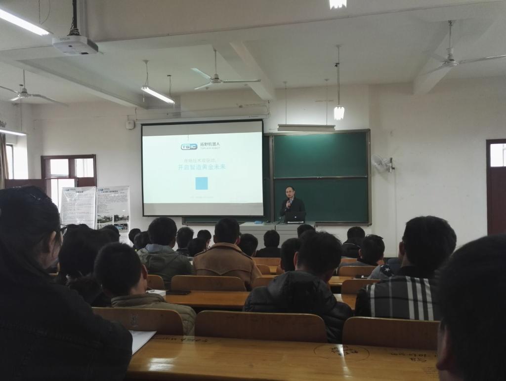 3月16日下午2点,拓野机器人副总经理兼技术总监杨安明先生在beat365官网中文阳光校区8D-201做了以“技术市场双驱动, 开启智造黄金未来”为主题的企业家科技讲座,机械公司200余名员工参加了此次报告会。