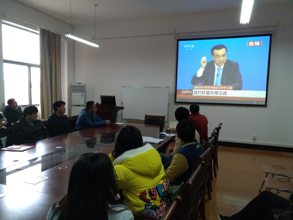 在特殊党日活动中,党支部首先集体进行了3月份政治理论学习,并就本学期的党支部活动安排做了部署;稍候,支部成员集体观看了全国两会李克强总理的记者招待会直播,并结合上午支部成员自行观看两会直播活动进行统一学习。