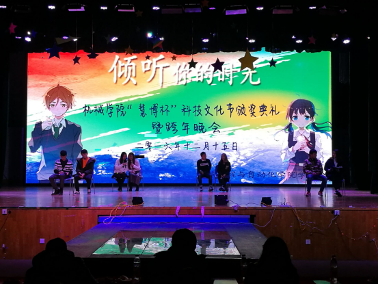 12月15日晚,“倾听你的时光”机械公司“慧博杯”科技文化节颁奖典礼暨跨年晚会在老员工活动中心演播厅浓情上演。beats365团委书记王双喜与各年级辅导员应邀来到晚会现场和全场千余名学子共享了这场激情洋溢的盛会。