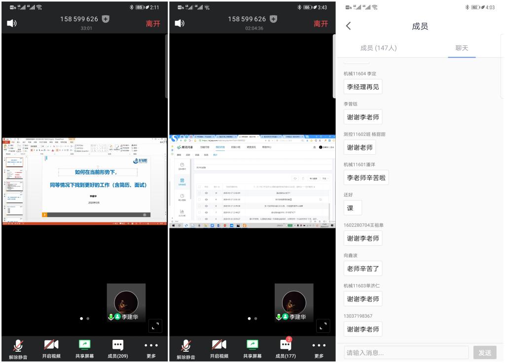 李老师从如何克服疫情中的求职压力、如何选择适合自己的工作、企业最喜欢招聘什么样的员工,以及如何制作更有吸引力和竞争力的简历等8个方面进行了详细深入的解读。李老师鼓励大家要提前进行职业测试,确定适合自己的工作方向,积极行动,多投简历。通过多份简历同步对比的方式,李老师向大家分析了什么是简历制作的核心与重点,并对面试礼仪和准备方法都做了详细讲解。在交流互动环节,李老师认真回答了同学们提出的关于求职的各类问题,在线讨论气氛热烈。