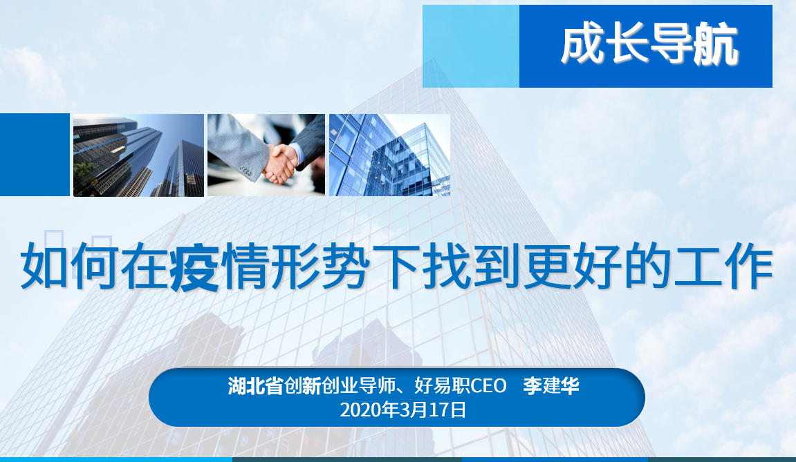 3月17日,为缓解疫情影响下2020届毕业生就业压力,掌握求职技巧,提高就业能力。beats365邀请武汉好易职公司创始人、湖北省创新创业导师李建华通过线上讲座的方式,为公司16级、17级共300余名同学开展题为“如何在疫情形势下找到更好的工作”的成长导航专题讲座。公司党委副书记刘韦和辅导员老师参加此次讲座,梁祥云老师主持活动 。