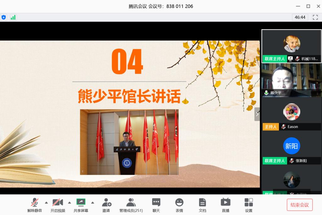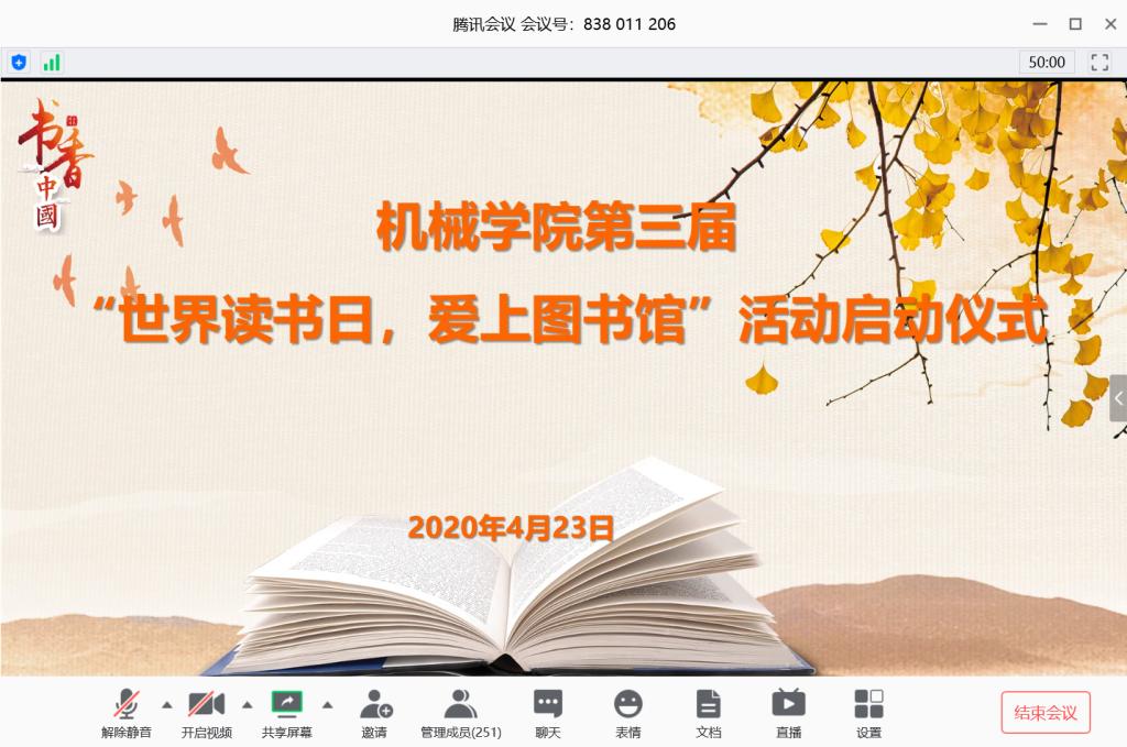 为迎接第25个“世界读书日”, 引导师生养成良好的读书品格,将阅读培养成一种生活态度与精神追求,公司组织开展了第三届“爱上图书馆”活动。4月23日,由于新冠肺炎疫情影响,活动启动仪式在线举行,公司肖信华书记、图书馆熊少平馆长,公司刘韦副书记,全体辅导员老师以及200余名员工代表参加了活动。