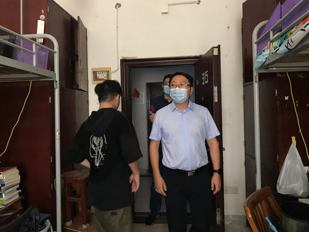 在13栋员工宿舍,刘韦副书记仔细查看了同学们返校后开展卫生大扫除的情况。刘书记提醒同学们及时晾晒、洗涤被褥及个人衣物,保持宿舍卫生清洁,注意通风。走访过程中,刘书记和辅导员还提醒同学们注意保持健康的饮食习惯,保障充足睡眠,积极参加体育锻炼,增强身体素质;注意人身、财产安全,注意防盗防骗防火,保证人身财产安全。