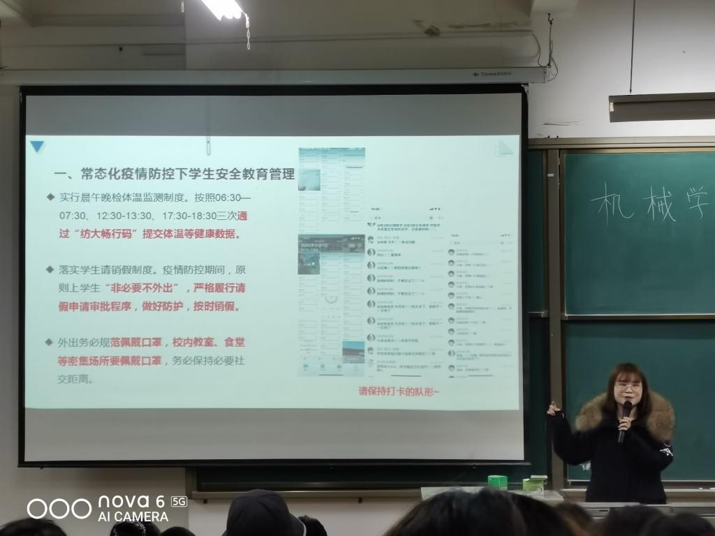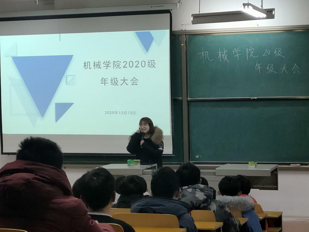 12月13日,机械公司20级举行年级大会,全体20级同学分两批次参加会议。辅导员肖锦老师主持会议。