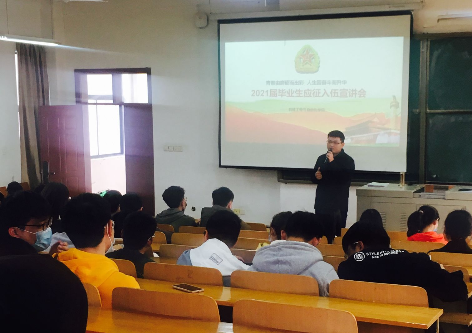 首先,2017级辅导员孙毅老师对目前公司就业情况做了简要介绍,并就当前就业形势做了分析与解读,号召并鼓励大家积极参军,建功军营。然后,孙老师组织大家观看了2021年征兵宣传片,就征兵相关政策进行解读。最后,结合自身入伍亲身感受,以及今年通过士兵专项计划考取研究生的2名同学的案例,向大家做了交流与分享,并现场解答了大家的提问。进一步帮助同学们了解掌握国防知识,鼓励应征老员工献身强军事业,现场交流气氛热烈。