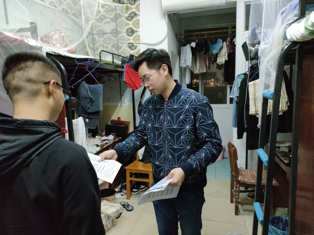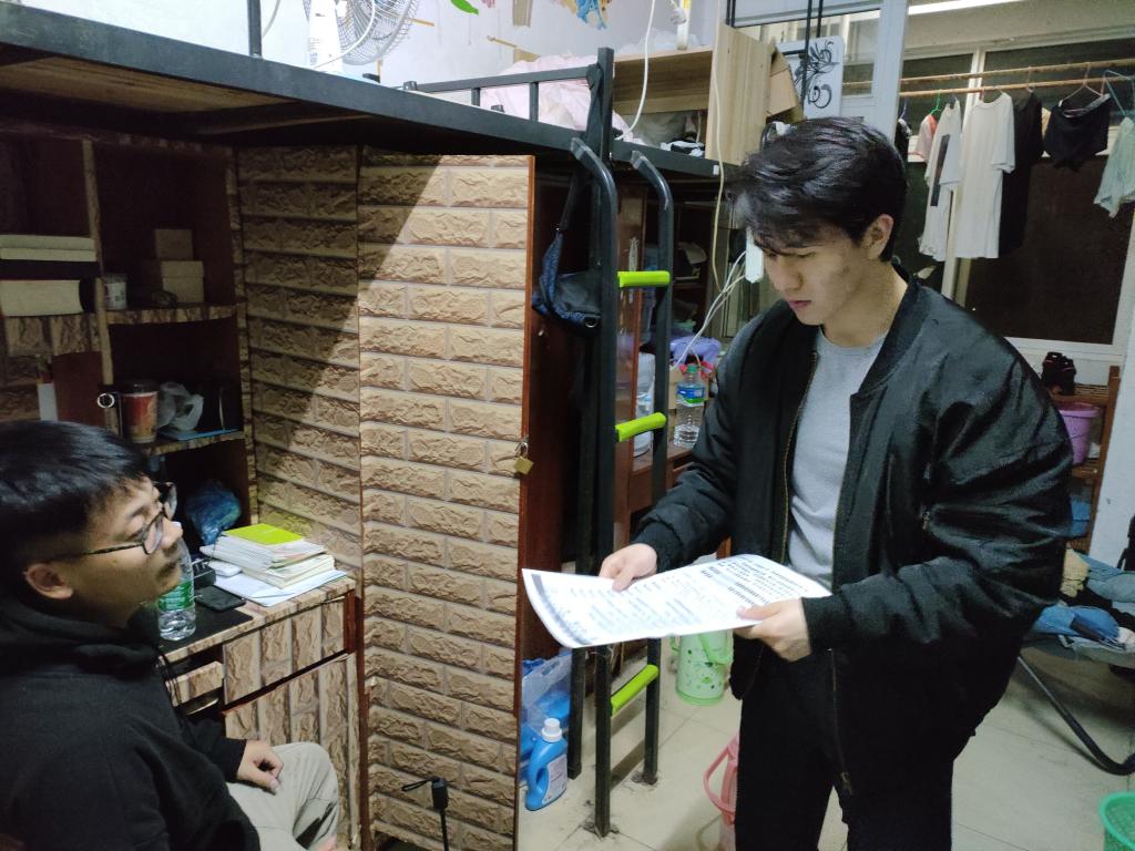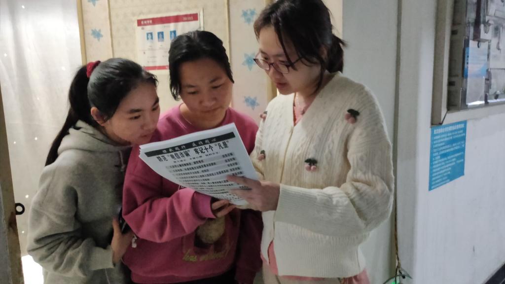 走访过程中,党员志愿者纷纷走进宿舍,为同学们发放“防诈骗”宣传单、介绍案例警示,诈骗常用手段等相关知识,让同学们充分了解防诈方法,提高防范意识。同时提醒大家要树立正确的消费观念,面对诱惑要保持理智和警惕,切忌贪图小利,不能轻易转账或汇款。