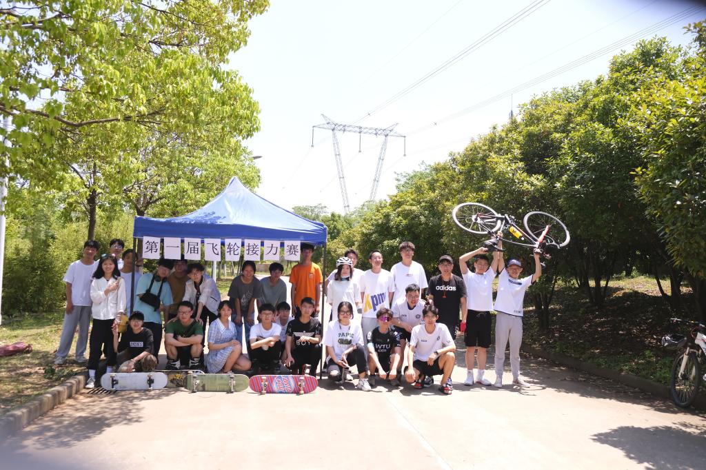 活动在操场外围400m长水泥地以折返接力方式进行,方式为滑板先行,自行车最后,同时三个类型项目之间间隔一定时间,累加计时方式进行。避免了滑板、轮滑和自行车同时出现在赛场上的情况,降低了发生碰撞的风险。同时3个社图分别派出一人,累计三人组成一队,促进了三个社团成员间的认识和交流机会。